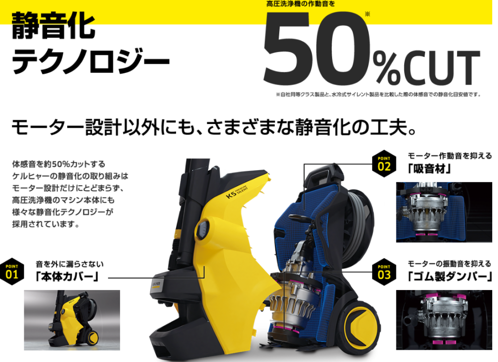 このケルヒャーK2サイレントは清音化テクノロジーによりご近所を気にせず
